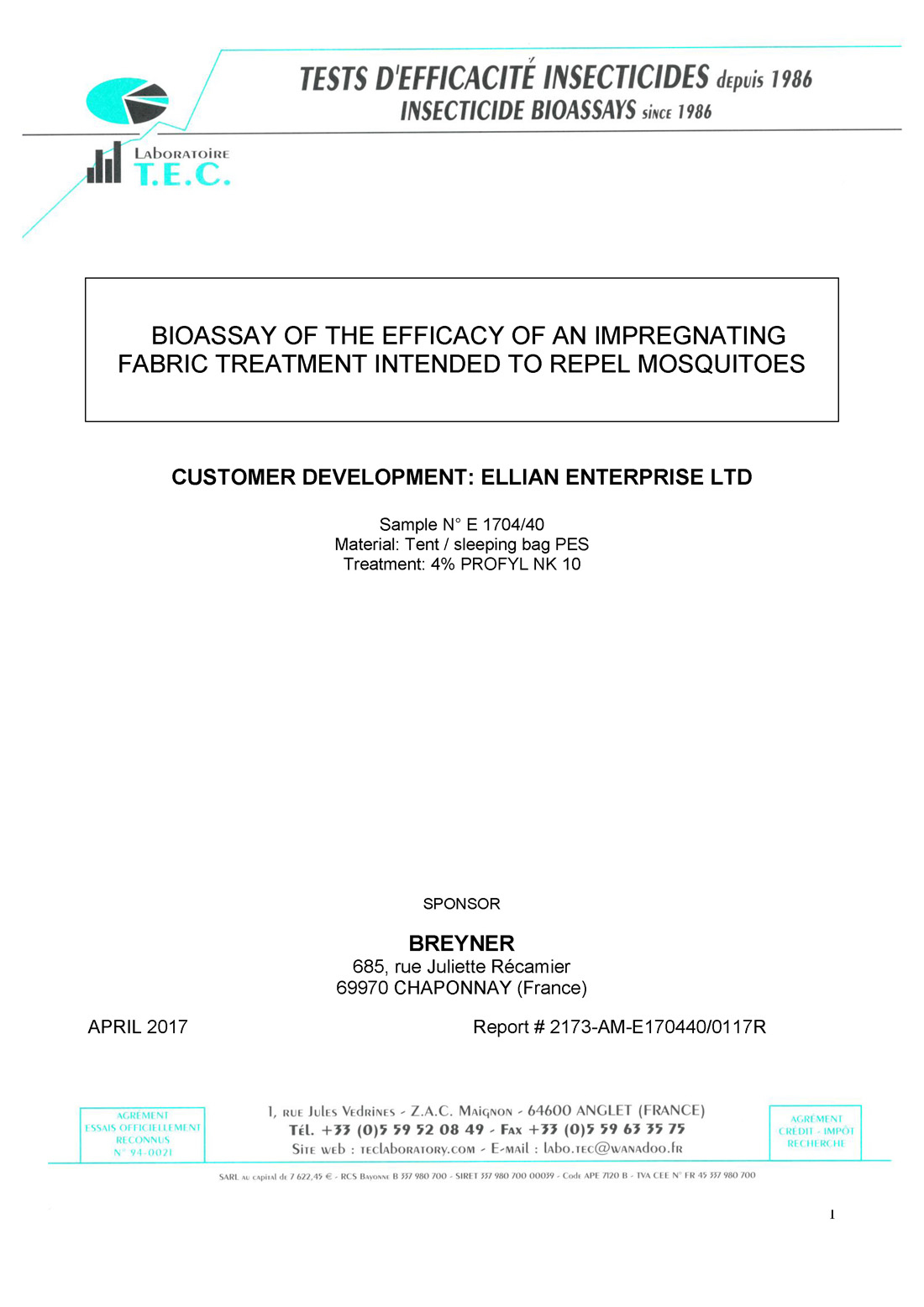 Greenfirst®提供的防蚊技術經獨立實驗室T.E.C.( Techniques Environnement Consulants)測試,能有效使您的家庭遠離蚊蟲的干擾(經實驗證實,能防止埃及斑蚊、白線斑蚊、尖音庫蚊、甘比亞瘧蚊等常見蚊蟲90%以上的叮咬。)