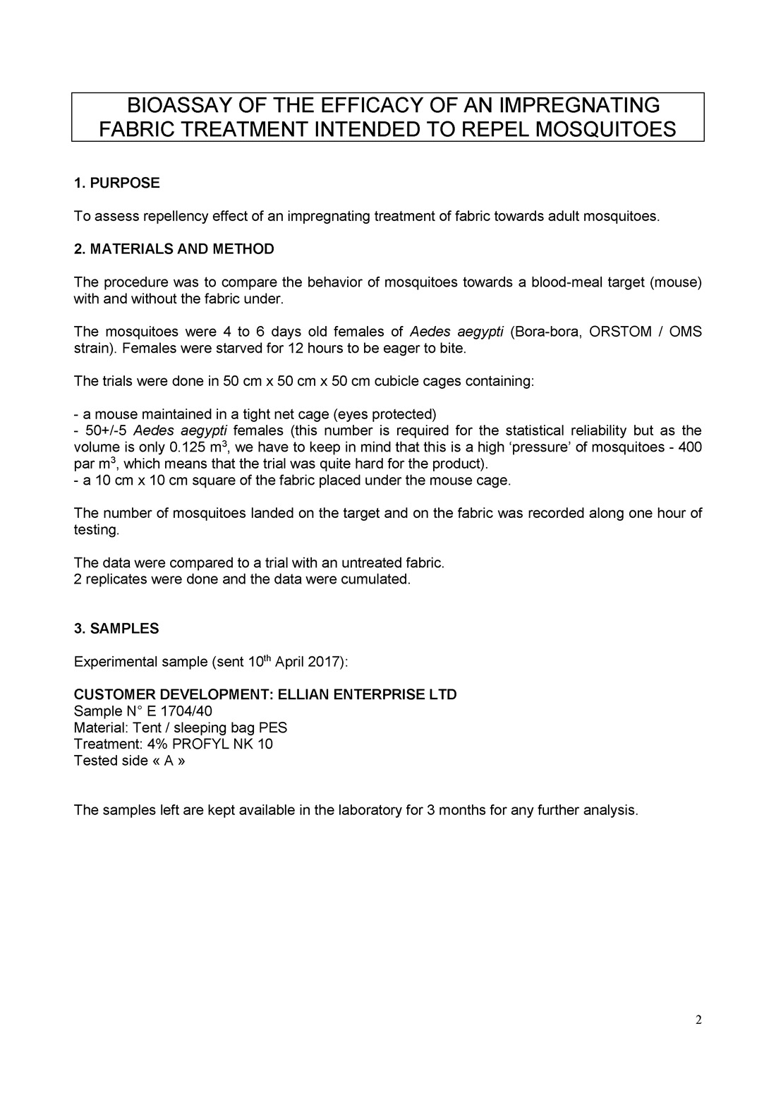 本產品經過獨立實驗室T.E.C.測試,經過至少30次水洗或雨淋,依舊能有效防止85%以上的蚊蟲叮咬。